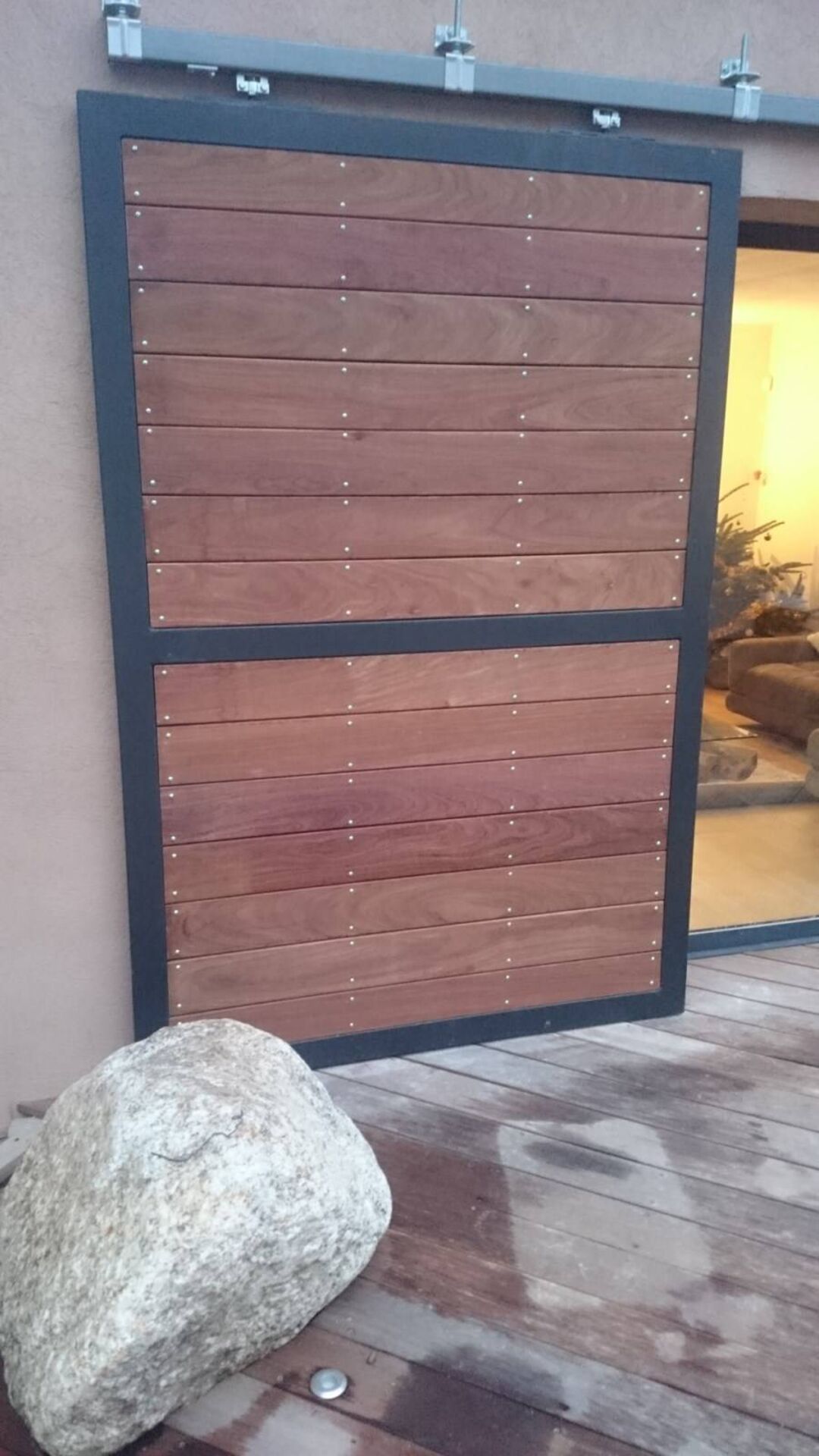 Thermolaquage d'un Volet Acier / Bois coulissant réalisé par Olivier GIANI à Villelaure (84)